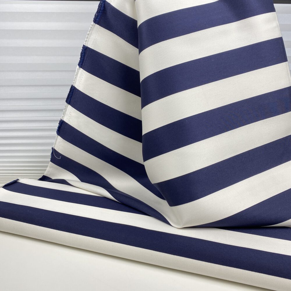 Die Streifen sind 5 cm breit und laufen quer über den Stoff.