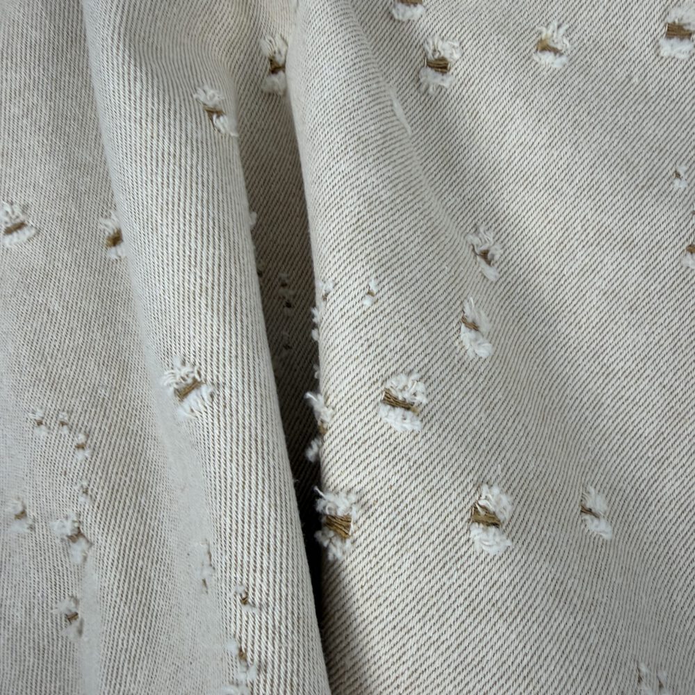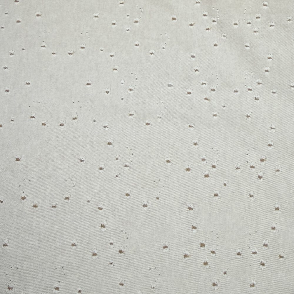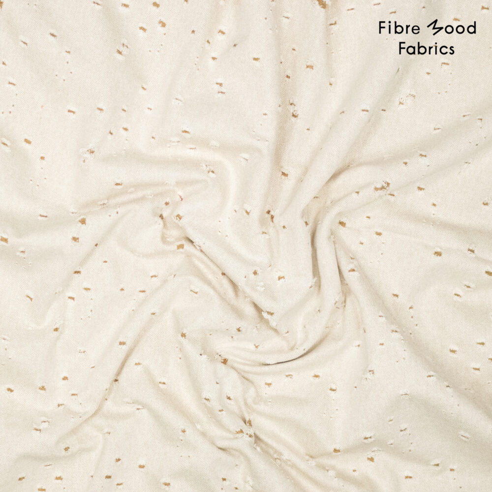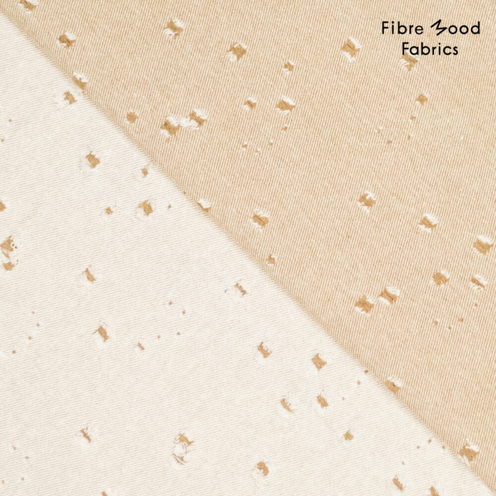 Dieser Broken-Denim besticht durch seine natürliche, ruhige Eleganz und eine fein strukturierte Optik. Der warme, cremefarbene Grundton wird von unregelmäßig eingestreuten, kleinen „Broken“-Akzenten in sanften Naturtönen durchzogen, die dem Stoff eine lebendige, handwerklich inspirierte Anmutung verleihen. Die dezente Musterung wirkt modern und gleichzeitig zeitlos – ideal für hochwertige Interior- und Modeanwendungen.
